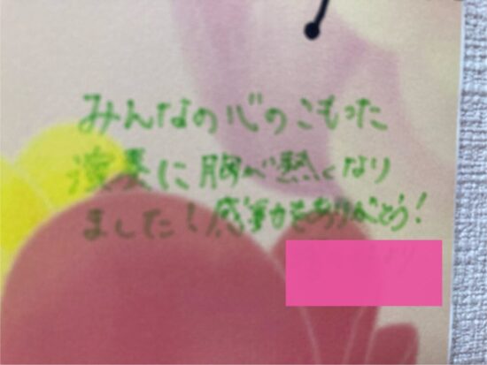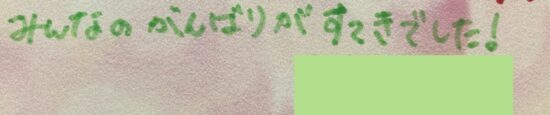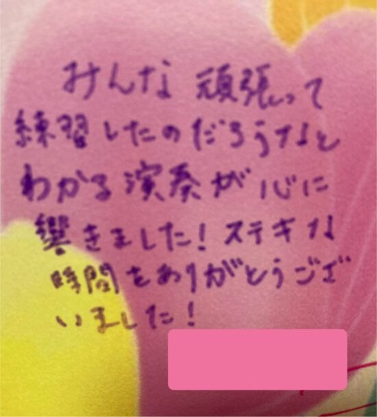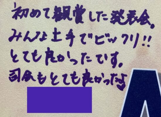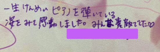 そして、今日はピピっ子ママさんたちの寄せ書きと、発表会後に頂いたLINEでのご感想をどんどんご紹介させていただきます☆