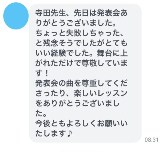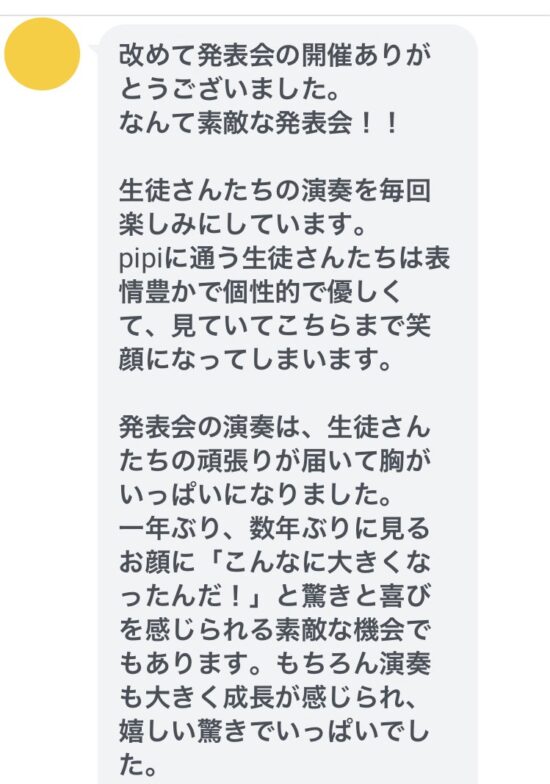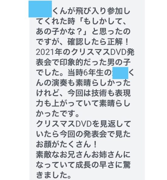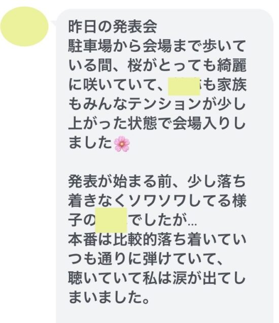 発表会後に感想や母親としての気持ちを送ってくださる方もたくさんいらっしゃいます。