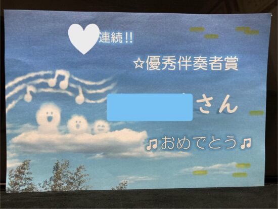 そして伴奏者には、伴奏者賞を用意してくださる学校もあります。