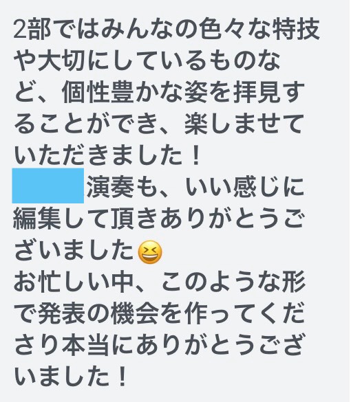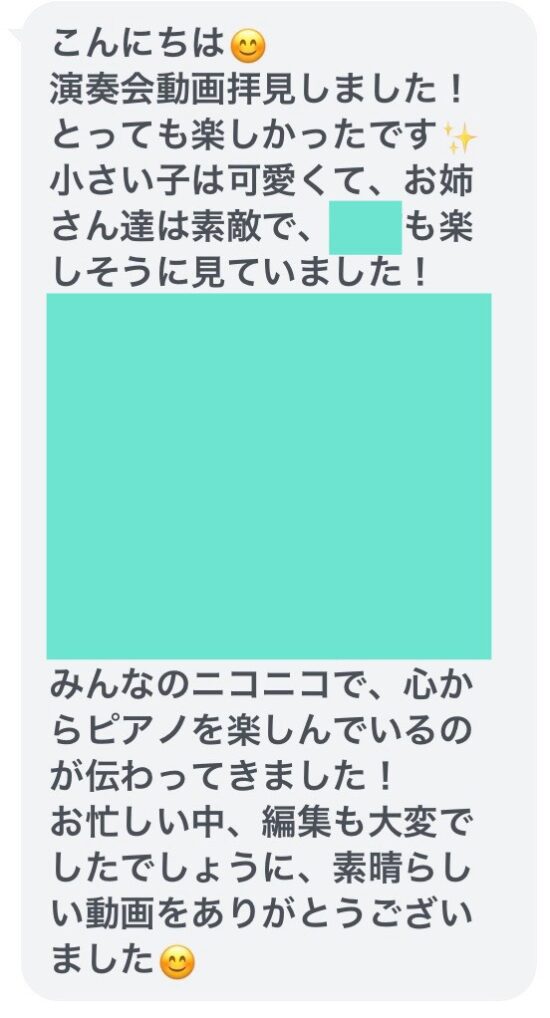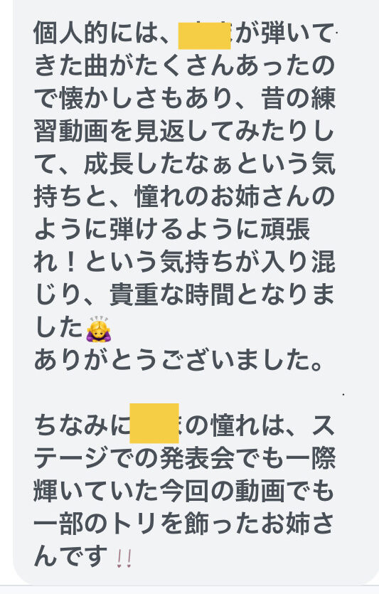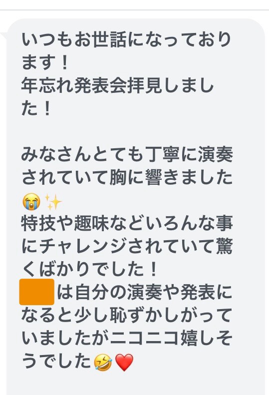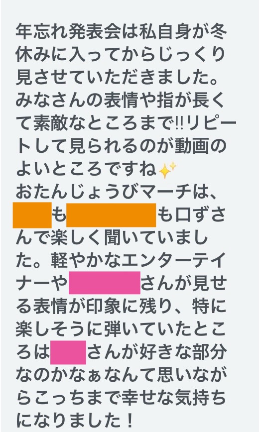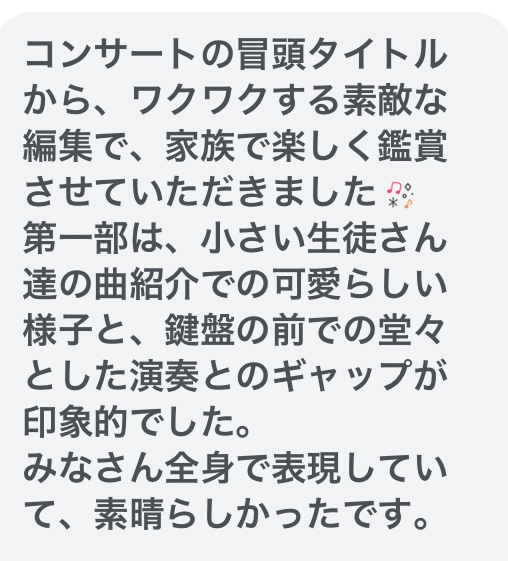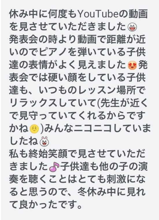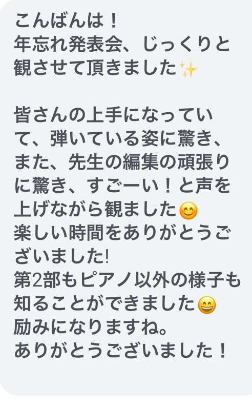 生徒さんに「年忘れ発表会」の出来上がりを伝えると続々と感想を伝えてくださいました